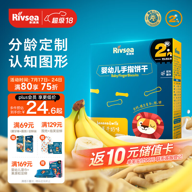 ¥31.8 禾泱泱婴幼儿饼干 宝宝零食8个月以上 磨牙饼干 手指饼干香蕉牛奶味70g 32.8