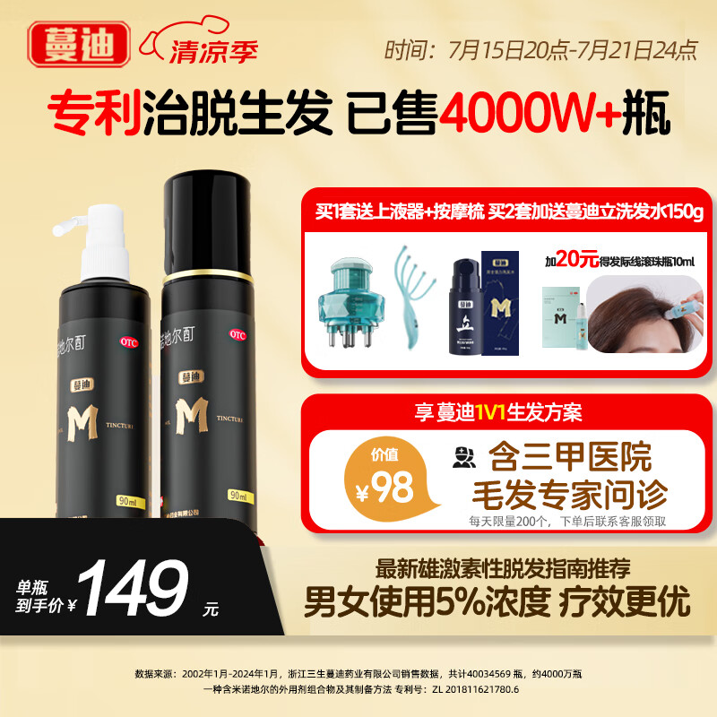 ¥326 蔓迪生发喷雾5%米诺地尔酊90ml*2瓶脱发严重男专用防脱生发育发发际线增长液洗发水脱发白发药品搽剂曼迪 346