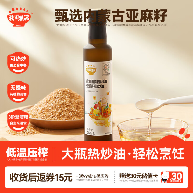 ¥35.21 秋田满满 亚麻籽热炒油250ml 42.42