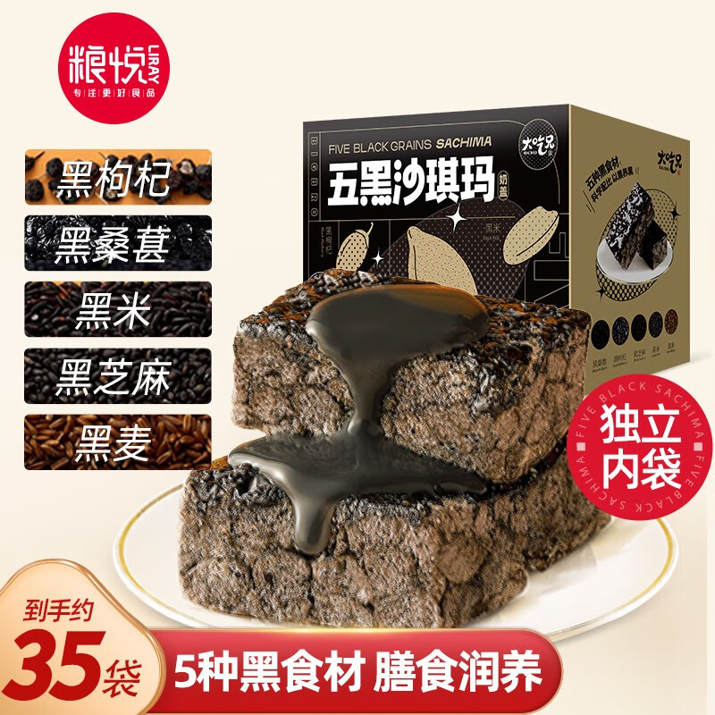 ¥19.9 【旗舰店】粮悦 五黑奶盖沙琪玛 720g(独立内袋) 39.9