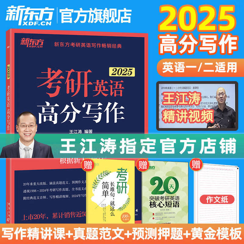 ¥33.5 【王江涛指定店铺】新东方2025考研英语写作 王江涛高分写作 英语一英语二 满分作文模板历年真题范文搭预测20篇石雷鹏作文考研真相黄皮书田静句句真研 2025王江涛高分写作【赠3件实物】 43.5