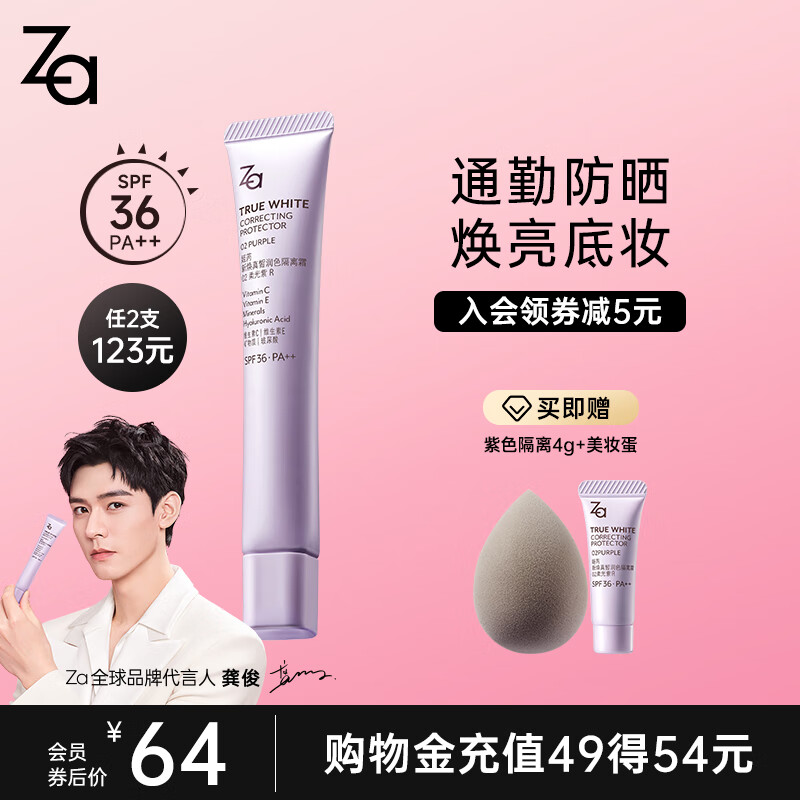 ¥64 姬芮(ZA)紫色焕真润色隔离霜防晒遮瑕霜妆前乳35g SPF36女朋友礼物 69