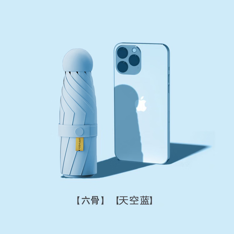 ¥19.8 Mrs Liu迷你五折叠太阳伞女防晒遮阳晴雨两用小巧便携口袋胶囊伞upf50+ 天空蓝 6骨 5折迷你air加厚 无规格 29.8