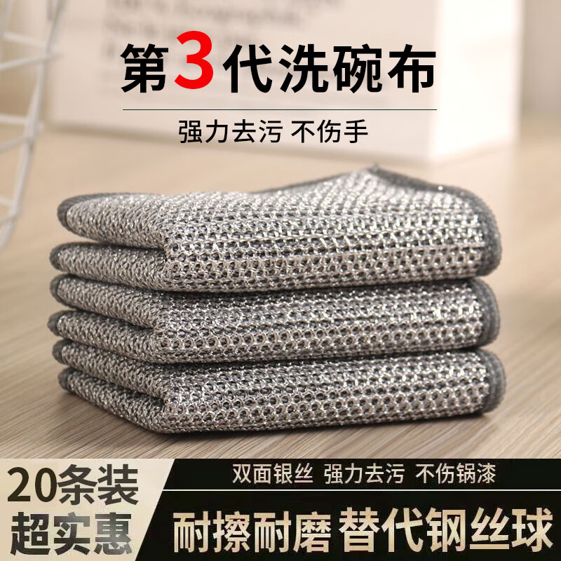 ¥9.9 洁饶20条银丝球抹布洗碗布日用清洁布网格不沾油抹布厨房灶台洗锅去污 20条银丝球抹布 39.9