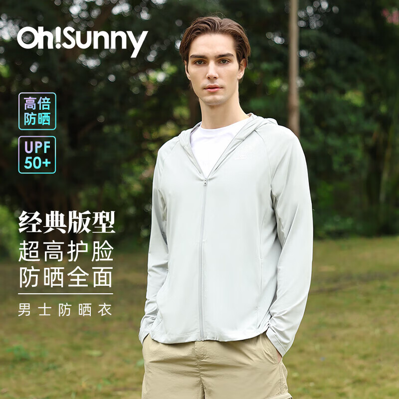 ¥188 OhSunny防晒衣男户外连帽轻薄透气骑行垂钓风衣 SMC5M144WT 气质灰 2XL 198