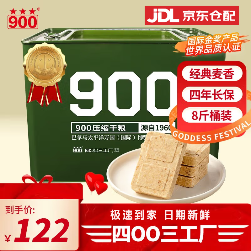 ¥94 900压缩饼干200g*20袋8斤铁桶装户外零食麦香原味家庭应急储备食品 122