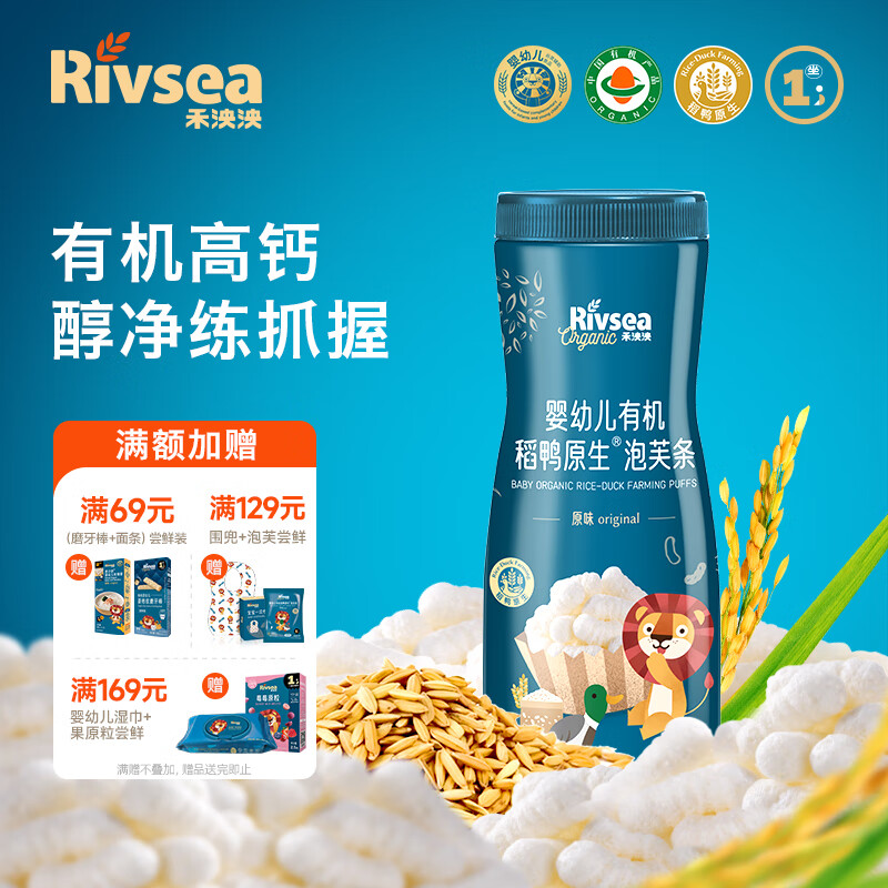 ¥33.03 禾泱泱婴幼儿有机泡芙条 宝宝零食6个月以上 稻鸭原生泡芙条原味32g 39.8