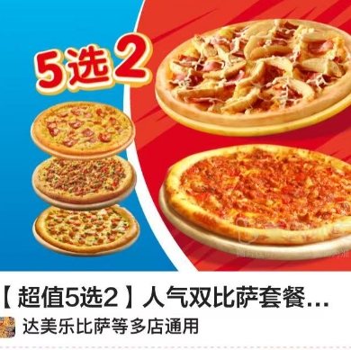 【美团外卖】39.9元!达美乐 5选2人气双比萨