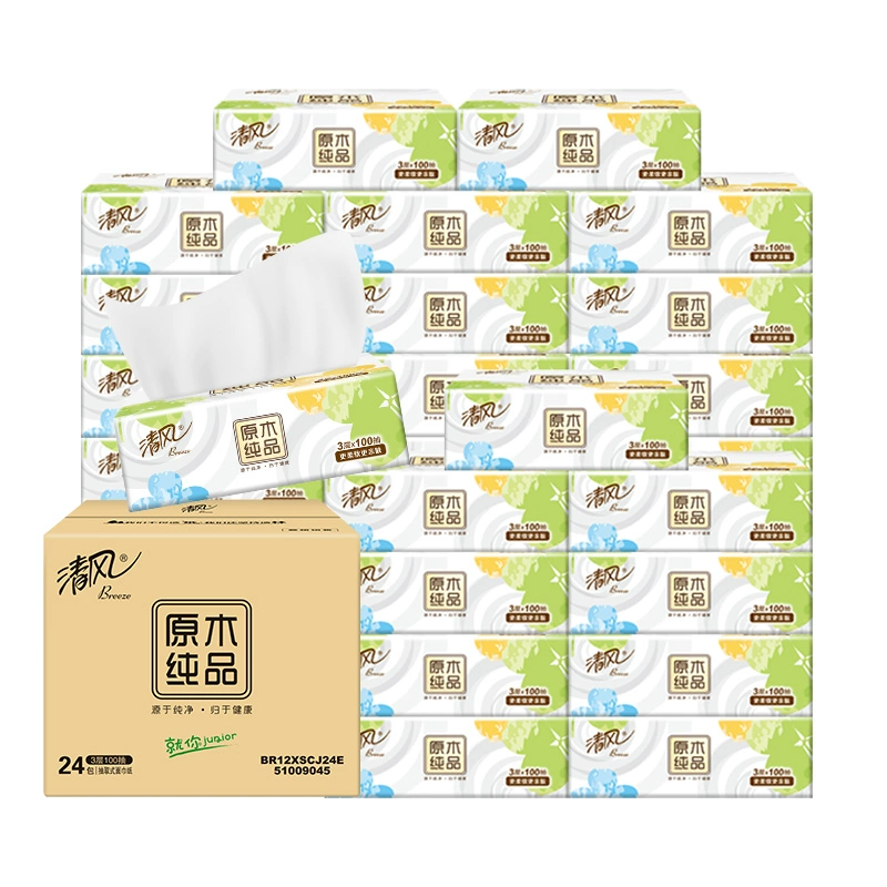 ¥62.9 清风抽纸原木就你3层100抽24包 64.9
