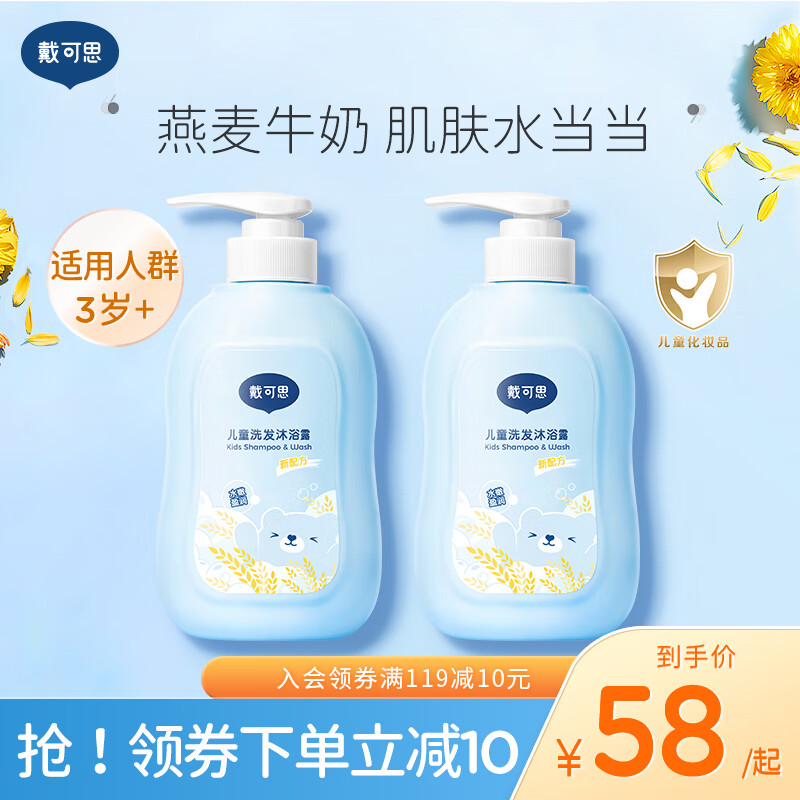 ¥48 戴·可·思(Dexter)儿童洗发水沐浴露二合一牛奶香燕麦提取物婴儿沐浴露洗发沐浴 儿童洗发沐浴500ml*2瓶装 68