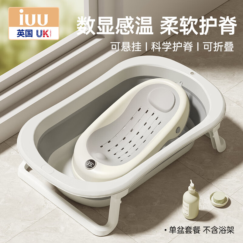 ¥46.9 iuu婴儿洗澡盆儿童浴盆大号宝宝可折叠可坐可躺新生儿童用品 【北欧灰】单盆 56.9