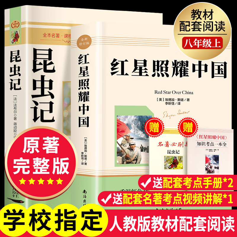 ¥25 【官方正版】红岩+红星照耀中国+昆虫记 红岩 初中八年级上册必读课外书 统编八上人教版教材配套阅读 初二课外阅读原著无删减完整版 【八上必读全2册+赠考点】红星照耀中国+昆虫记 35