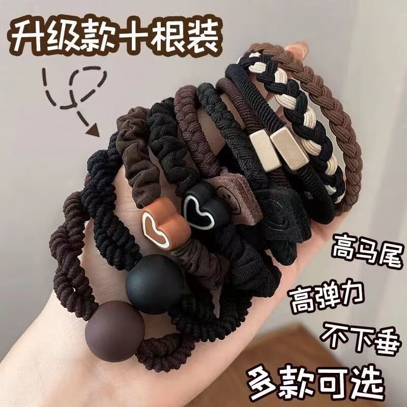 ¥9.9 辣妈萌娃高弹力耐用皮筋女孩扎头简约气质高马尾发绳头绳高级感儿童配饰 高弹力头绳10件—主图款 19.9