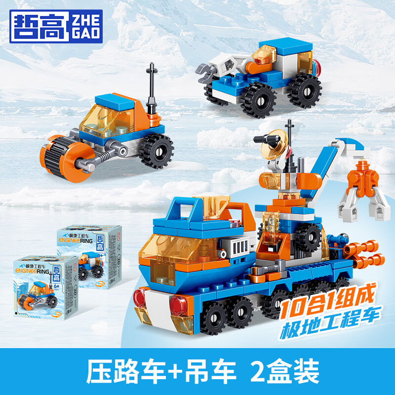 ¥9 哲高极地工程车可合体拼装汽车积木儿童玩具汽车男孩生日礼物 压路车+吊车【两盒独立盒装】 20