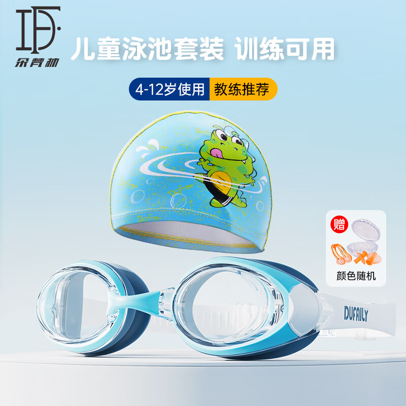¥19.9 朵梵林(duofanlin)儿童游泳镜男女童防水防雾防晒高清游泳装备舒适快速调节游泳眼镜 顽皮鳄套装 59.9
