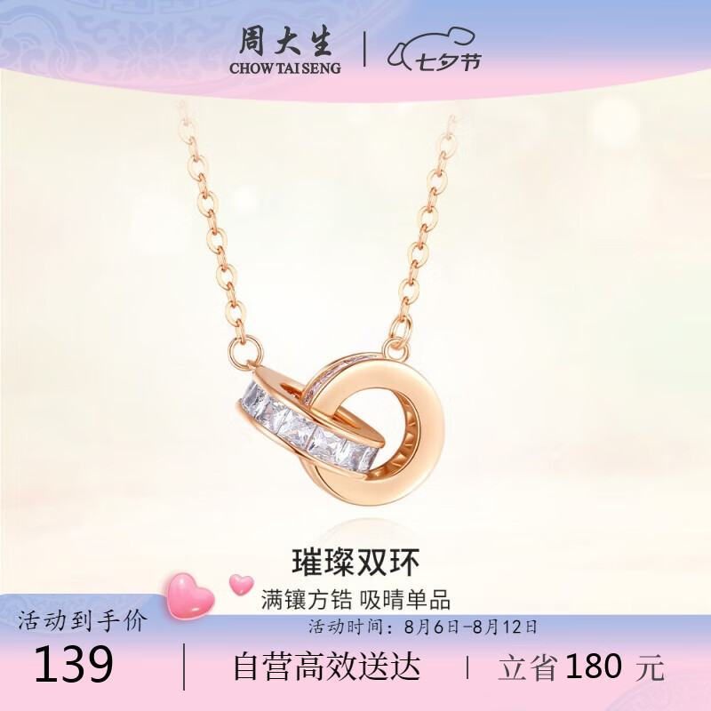 ¥279 周大生双环锁骨链银项链时尚饰品ins小众设计送女生七夕礼物 319