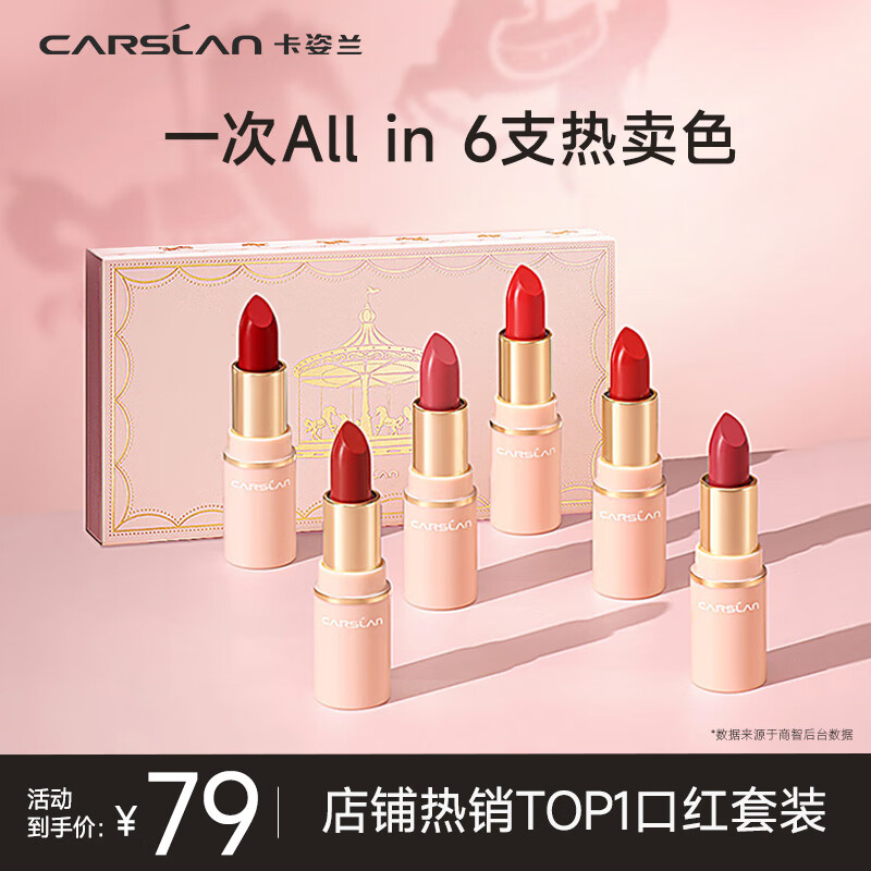 ¥65 卡姿兰(Carslan)【专享品】粉悦木马口红礼盒雾感哑光唇膏不易沾杯mini6支套装 79