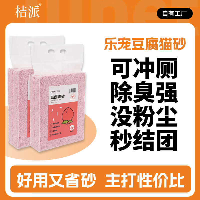 ¥9.9 桔派性价比纯豆腐猫砂可冲厕奶香水蜜桃绿茶香2.4kg 水蜜桃 2.4kg*1袋 20.9