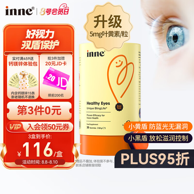 ¥178 inne童年蓝光盾叶黄素儿童时光护眼软糖 蓝莓叶黄素花青素玉米黄质 婴幼儿青少年成人 进口30粒/罐 188
