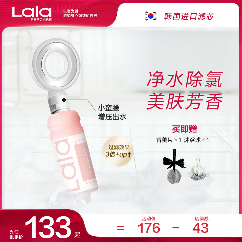 ¥133 LALAPERCARE/娜拉之夏韩国进口香氛除氯美肤增压过滤花洒喷头净化 大马士革玫瑰+太空环增压花洒 176