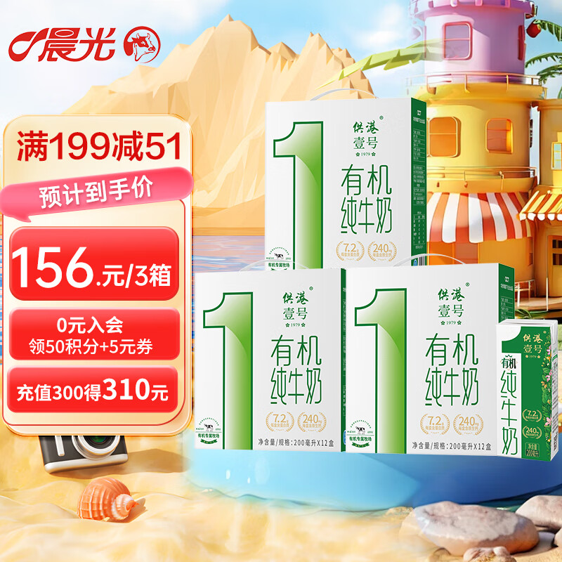 ¥141 晨光 供港壹号有机纯牛奶 全程有机可追溯200ml*12盒 3箱【5月日期】 207