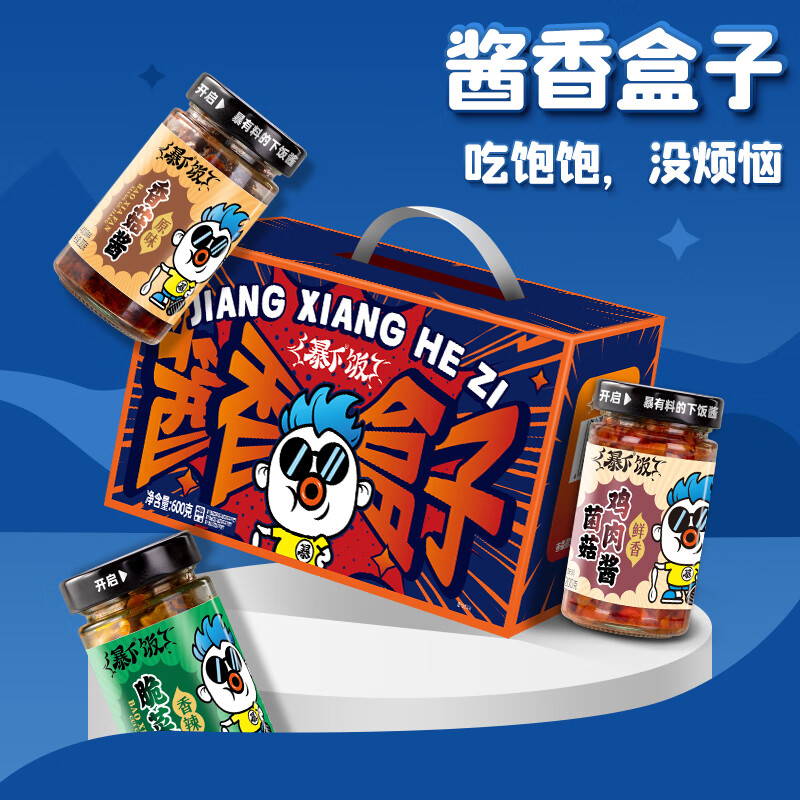 ¥14.9 吉香居暴下饭礼盒 拌饭拌面酱香菇酱鸡肉酱榨菜200g*3瓶下饭酱 24.9