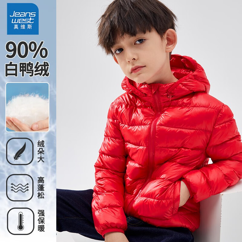 ¥59.9 真维斯(Jeanswest)儿童羽绒服轻薄款男童秋冬季外穿童装女童时尚保暖冬装上衣 【羽绒服】红 160 99.9