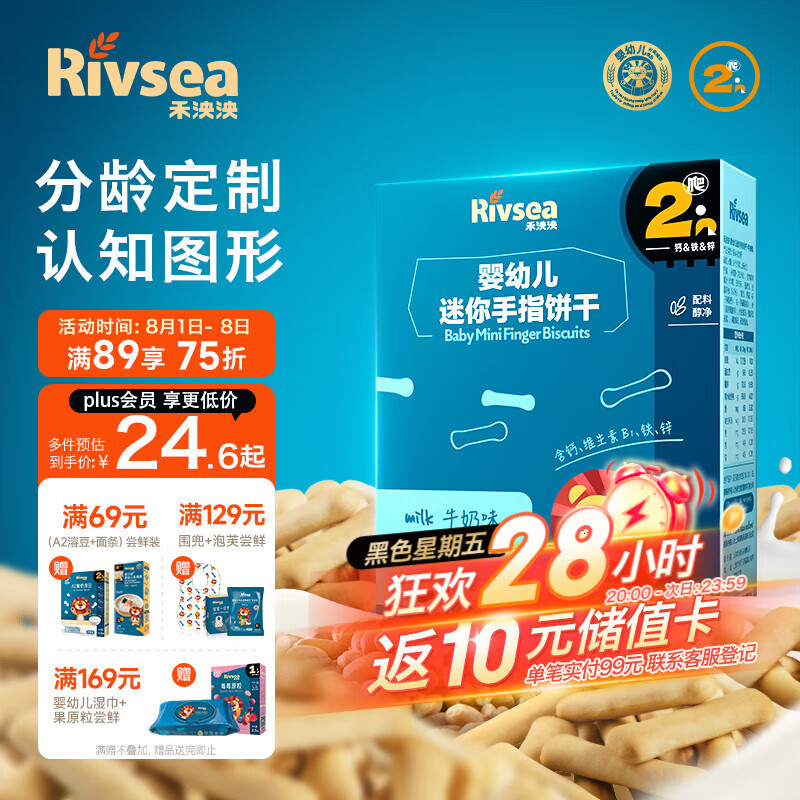 ¥27.22 禾泱泱婴幼儿饼干 8个月以上 宝宝零食 磨牙饼干 迷你手指饼干牛奶味80g 32.8
