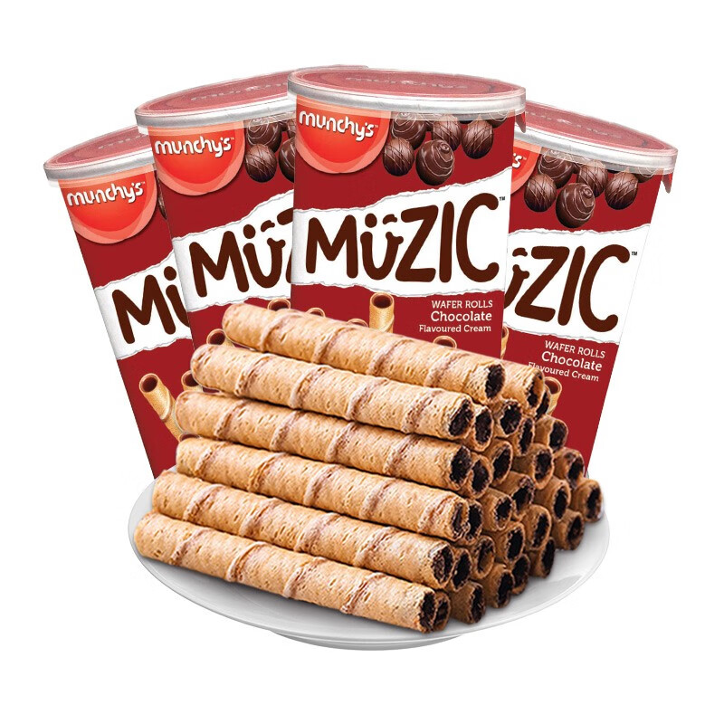 ¥23.9 【旗舰店】马奇新新 巧克力威化蛋卷 85g*4罐 29.9