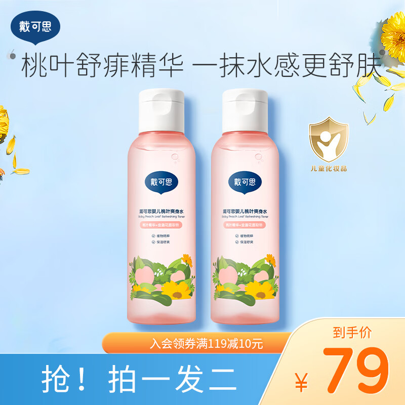 ¥79 戴·可·思(Dexter)婴儿桃子水爽身露液态爽肤露爽身粉天然桃叶爽身水 桃叶爽身水150ml两瓶装 89