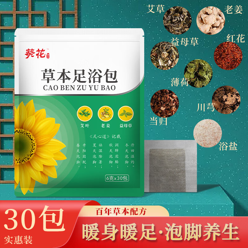 ¥9.9 草本足浴包艾叶草本养生足浴包泡脚粉中草药湿气寒疲劳男女可用 90包 39.9
