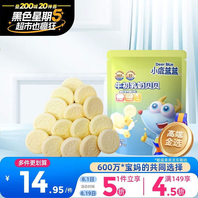 ¥14.95 小鹿蓝蓝_牛初乳奶贝贝 奶片儿童零食宝宝奶片含牛初乳酥脆易咀嚼 60g 29.9