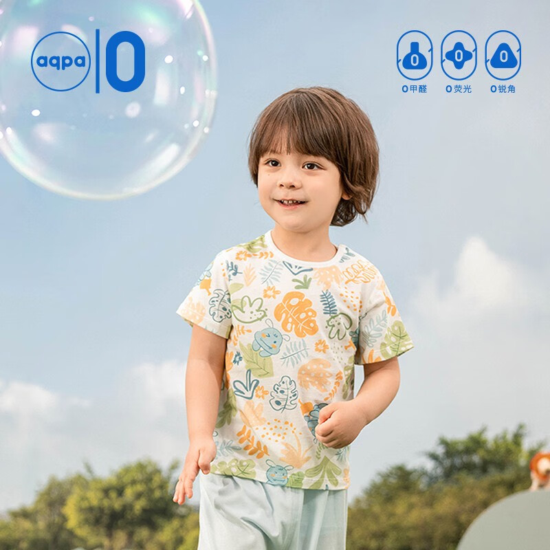 ¥36 aqpa儿童短袖T恤纯棉上衣春夏宝宝衣服内搭打底萌 丛林小天 100cm 41