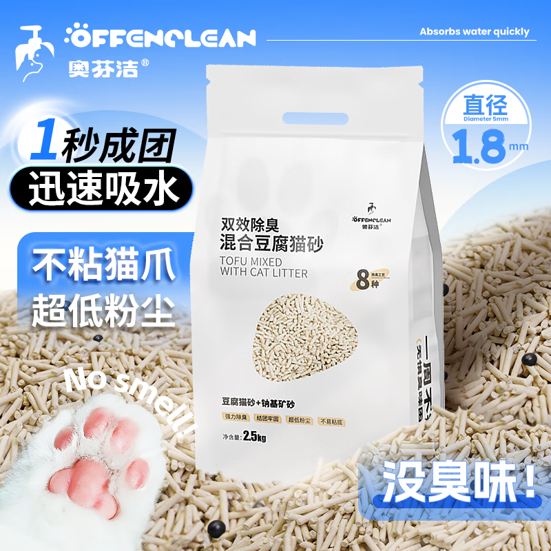 ¥7.9 奥芬洁混合豆腐猫砂高效除臭快速结团无尘不沾底不沾猫爪猫咪用品 豆腐混合猫砂*1袋/2.5kg 19.9