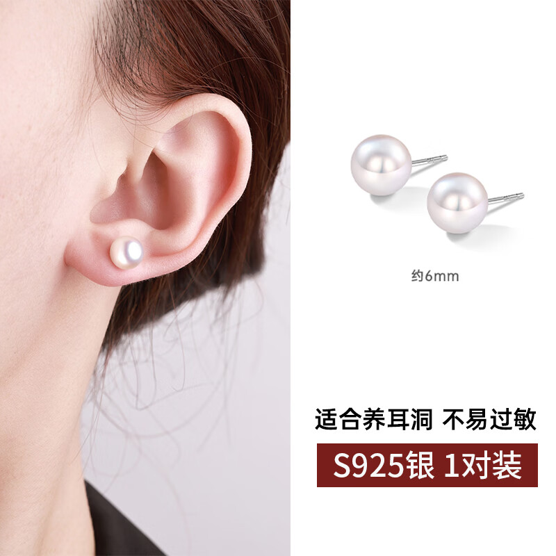 ¥4.8 闪亮银饰925银珍珠耳环女耳钉耳坠七夕情人节纪念日耳饰女生日礼物送女友 【6mm】珍珠白耳钉 一对装 14.8