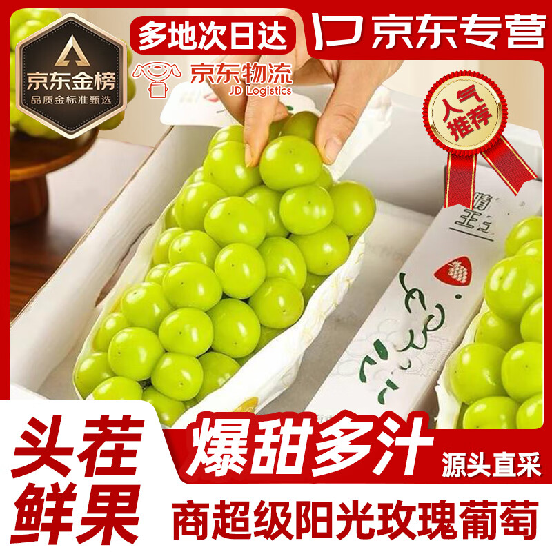 ¥56.9 蒲恋江苏阳光玫瑰葡萄整箱可达5斤晴王无籽香印提子新鲜水果礼盒装 5斤 单果10-12g礼盒净重4.5斤起 源头直采A+级【整串大颗粒】 68.9
