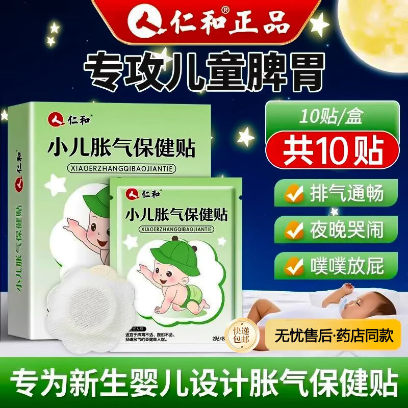 ¥24 仁和胀气贴 0-3-6个月婴儿小儿防肠胀气贴新生宝宝排气肠绞痛附肚脐贴 【1盒装】胀气贴 10贴/盒 39