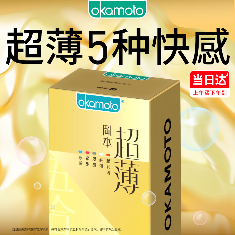 ¥59 冈本 避孕套 超薄鎏金礼盒22片 裸感超润滑 男女用 套套 成人情趣 计生用品 okamoto 99