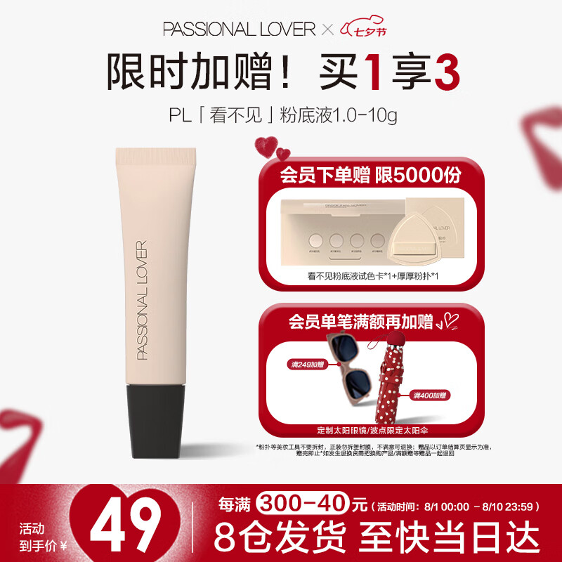 ¥49 Passional Lover/PL看不见粉底液00瓷白色10g便携装 遮瑕干皮奶油肌保湿粉底 58