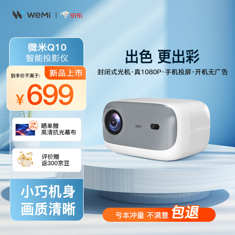¥399 WEMI Q10 投影仪家用 智能投影机客厅家庭影院手机投影 (全封闭光机 1080P高清 手机投屏 开机无广告) 699