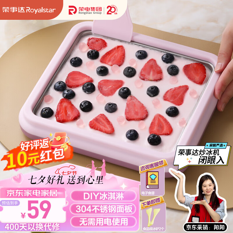 ¥40 荣事达(Royalstar)炒酸奶机 炒冰机 冰淇淋机器儿童家用自制DIY酸奶机炒冰板炒酸奶网红制冰神器CBJ06S紫色 59