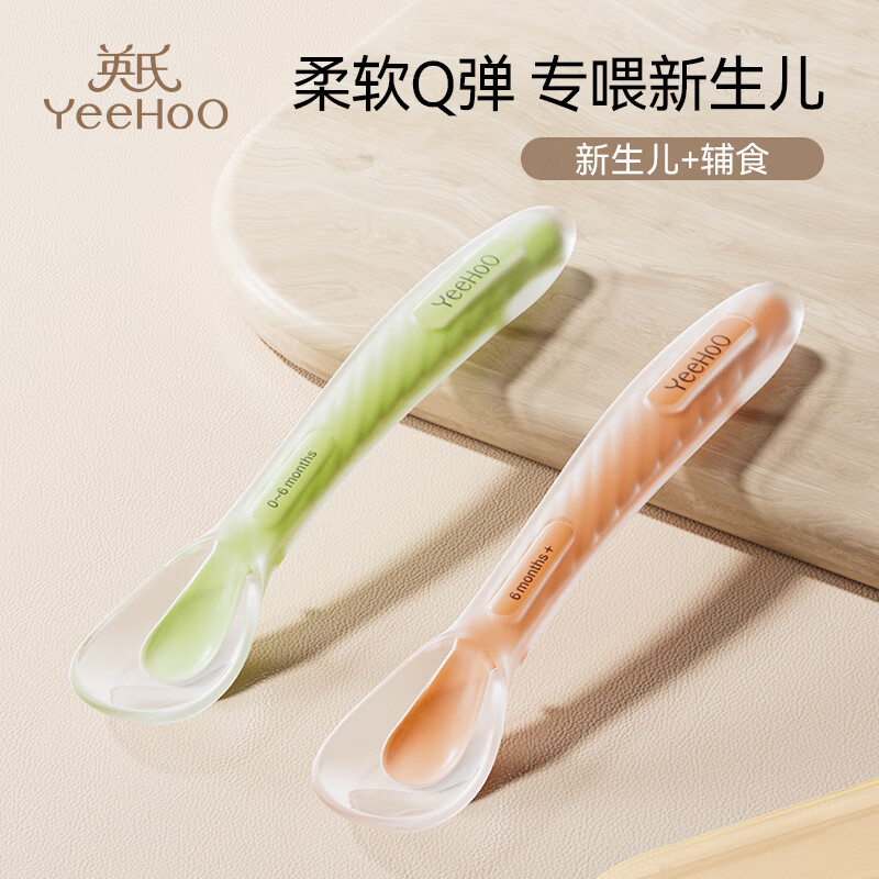 ¥39.9 英氏(YEEHOO)硅胶勺子新生婴幼儿宝宝辅食勺子喂水硅胶软勺餐具喂奶养米粉 硅胶勺【2只装+收纳盒】 49.9