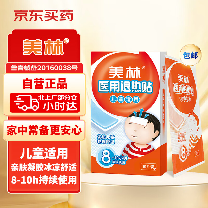 ¥55.35 美林 医用退热贴10片退热贴儿童退烧贴婴儿降温贴冰宝贴物理降温冰冰贴宝宝小儿退烧3个月以上家庭常备成人 61.5