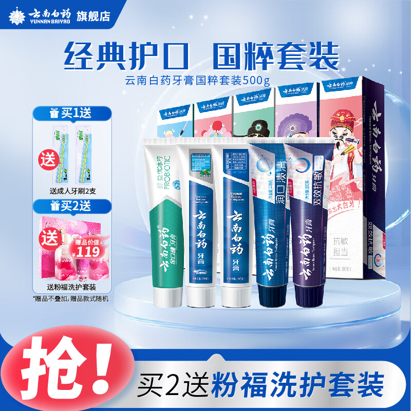¥169 云南白药牙膏国粹套装5支共500g家庭装留兰薄荷益生菌减轻牙龈问题 cy 国粹套装500g 269