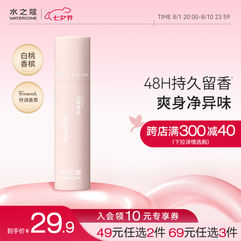 ¥19.9 水之蔻走珠非止汗露男女士腋下香体露48h抑汗留香夏季清爽 白桃香槟20ml 29.9