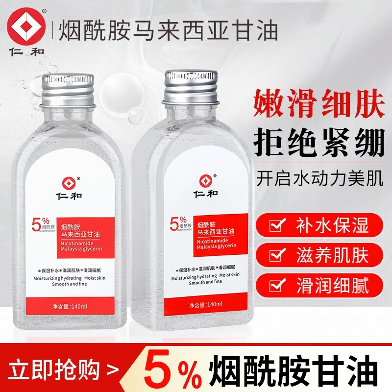 ¥12.9 仁和 5%烟酰胺马来西亚甘油脸肤补水保湿提亮滋润不粘腻润肤露男女 2瓶装 39.9
