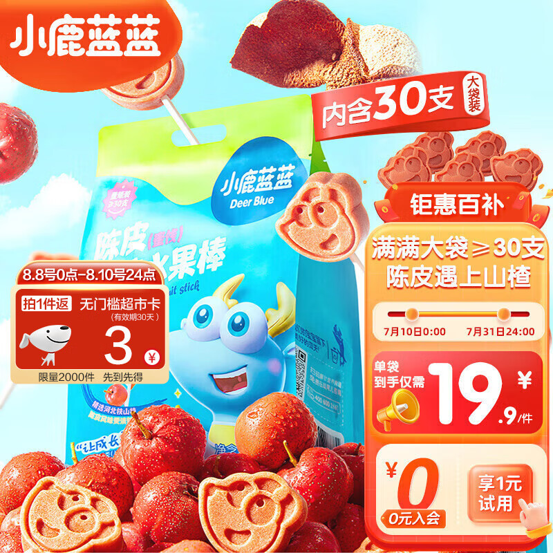 ¥19.9 小鹿蓝蓝宝宝陈皮山楂棒【30支】宝宝儿童陈皮山楂棒零食 鲜果制作315g 29.9