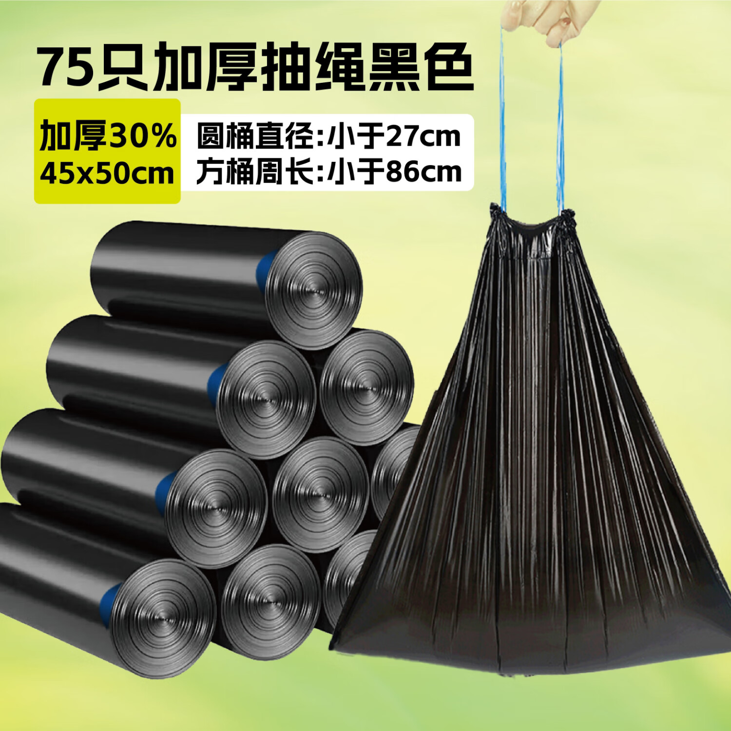 ¥3.93 舒而雅抽绳手提式垃圾袋 家用抽绳手提式厨房客厅办公室加厚袋 加厚 点断45*50 2.6丝75只 黑色 新料 7.93