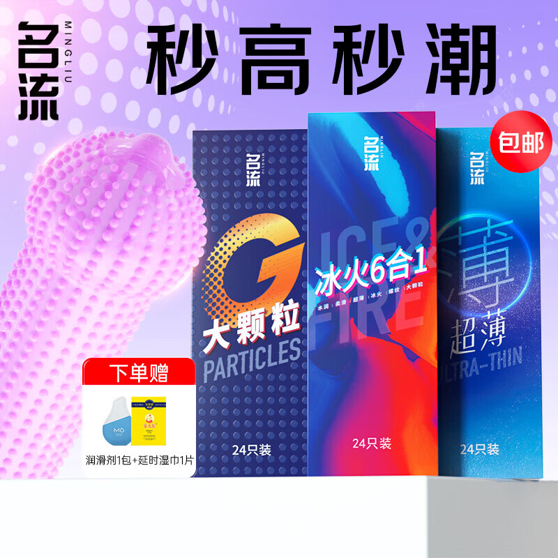 ¥39.5 名流 避孕套超薄隐形裸入 安全套套 狼牙快潮大颗粒螺纹不射72只装52mm 男女用 空气成人计生用品 49.5