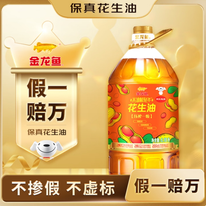 85元包邮!金龙鱼 物理压榨 压榨一级花生油6.18L
